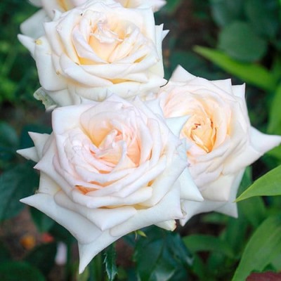 Цветки розы имеют кремово-абрикосовый оттенок с более светлой изнанкой лепестков, что делает их особенно привлекательными. Основной цвет варьируется от кремового до персикового, а насыщенность оттенка бледная.